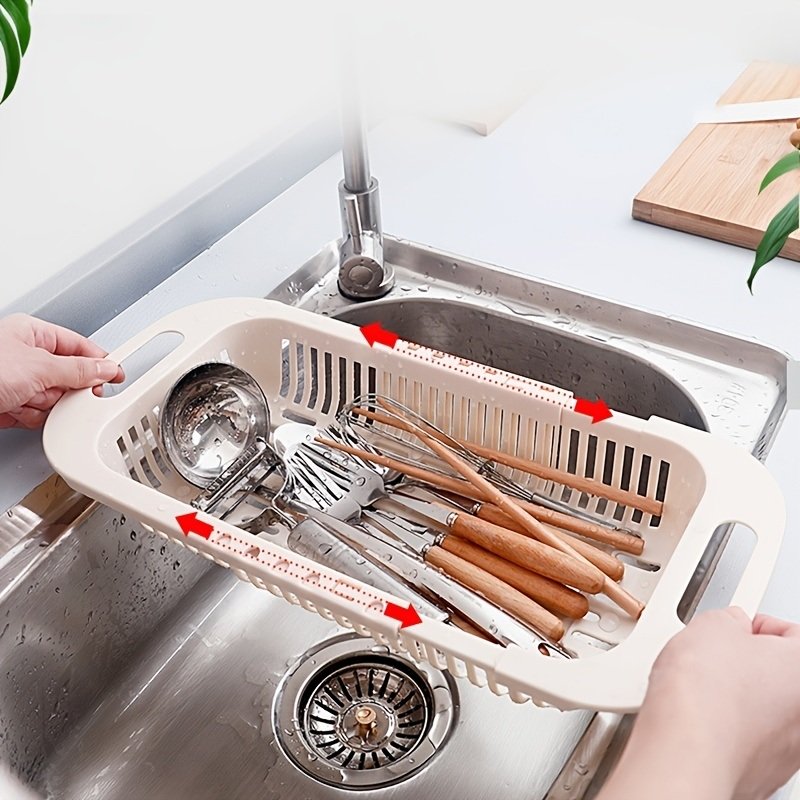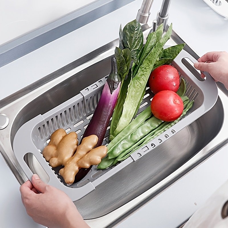 Home > 1pc Retractable Fruits And Vegetables Drain Basket; Extendable Over The Sink; Adjustable Strainer; Sink Washing Basket For Kitchen