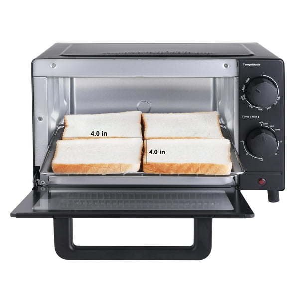 pizza and much more. The Toaster Oven can accommodate up to 4 slices of bread or a 9-inch pizza. The turn dial allows you to easily adjust the temperature mode and time settings. The compact size uses less energy and counter space and stores easily. Makes mealtime swift and smooth, especially in busy households. The sleek black finish will coordinate beautifully with existing kitchen decor and color palettes. Comes with baking rack and baking pan, simply wipe clean the oven exterior for quick and easy cleaning. to become a staple in your home cooking and baking ventures, bring new experience in your daily life.