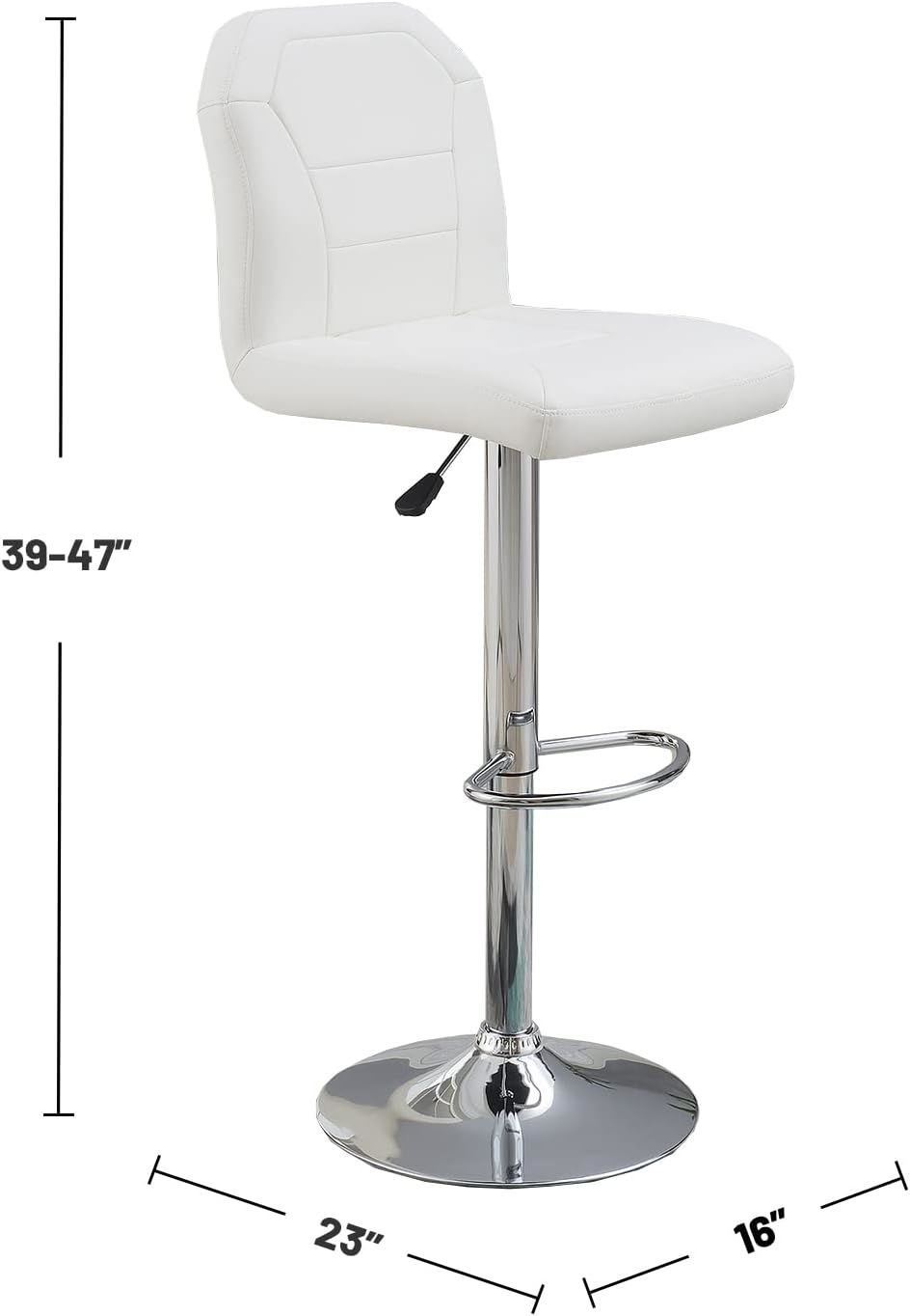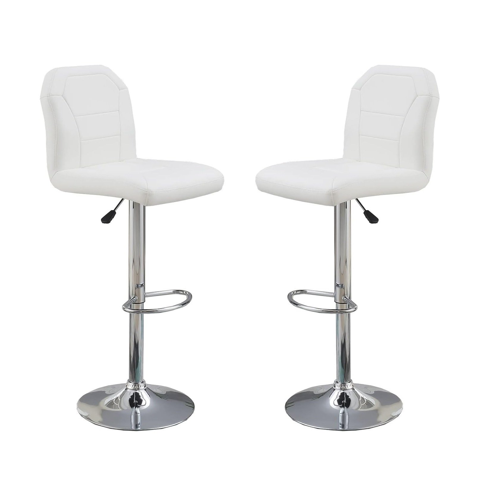 Home > Adjustable Bar stool Chair White Faux Leather Clean Lines Seat Chrome Base Modern Set of 2 Chairs / Bar Stool Dining Kitchen