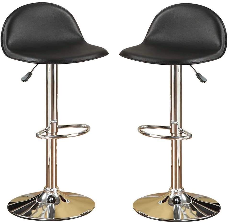 Black Faux Leather Stool Adjustable Height Chairs Set of 2 Chair Kitchen Island Stools Chrome Base PVC Dining Furniture