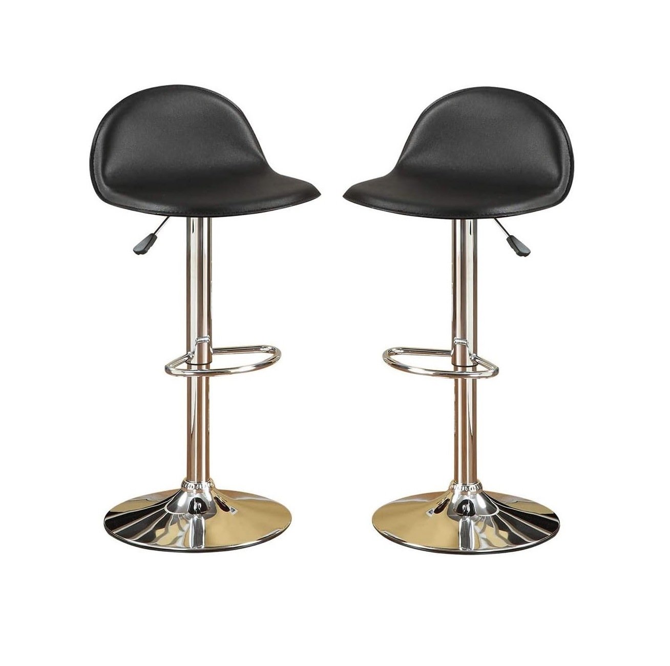 Home > Black Faux Leather Stool Adjustable Height Chairs Set of 2 Chair Kitchen Island Stools Chrome Base PVC Dining Furniture