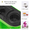 5, (FOOD-APPROVED MATERIAL + EASY TO CLEAN)BPA-free material for water tank and piercing needle.Detachable filter basket and drip tray can be washed directly.Drip tray keep brew space neat and clean.For cleaning,just add water and vinegar and press button.