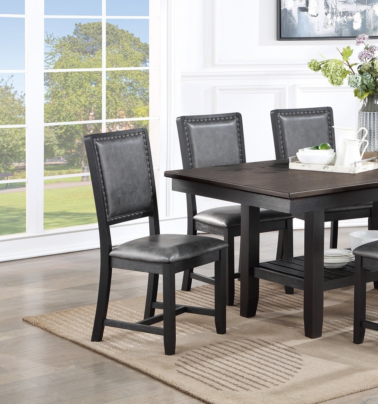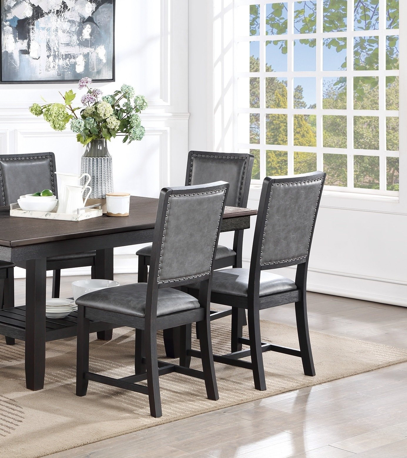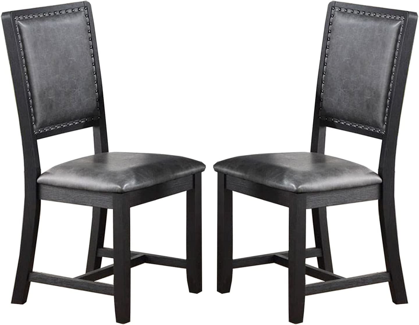 Classic Kitchen Dining Room Set of 2 Side Chairs PU foam upholstered Seat Back Side Chairs Grey Finish Modern Breakfast Chairs