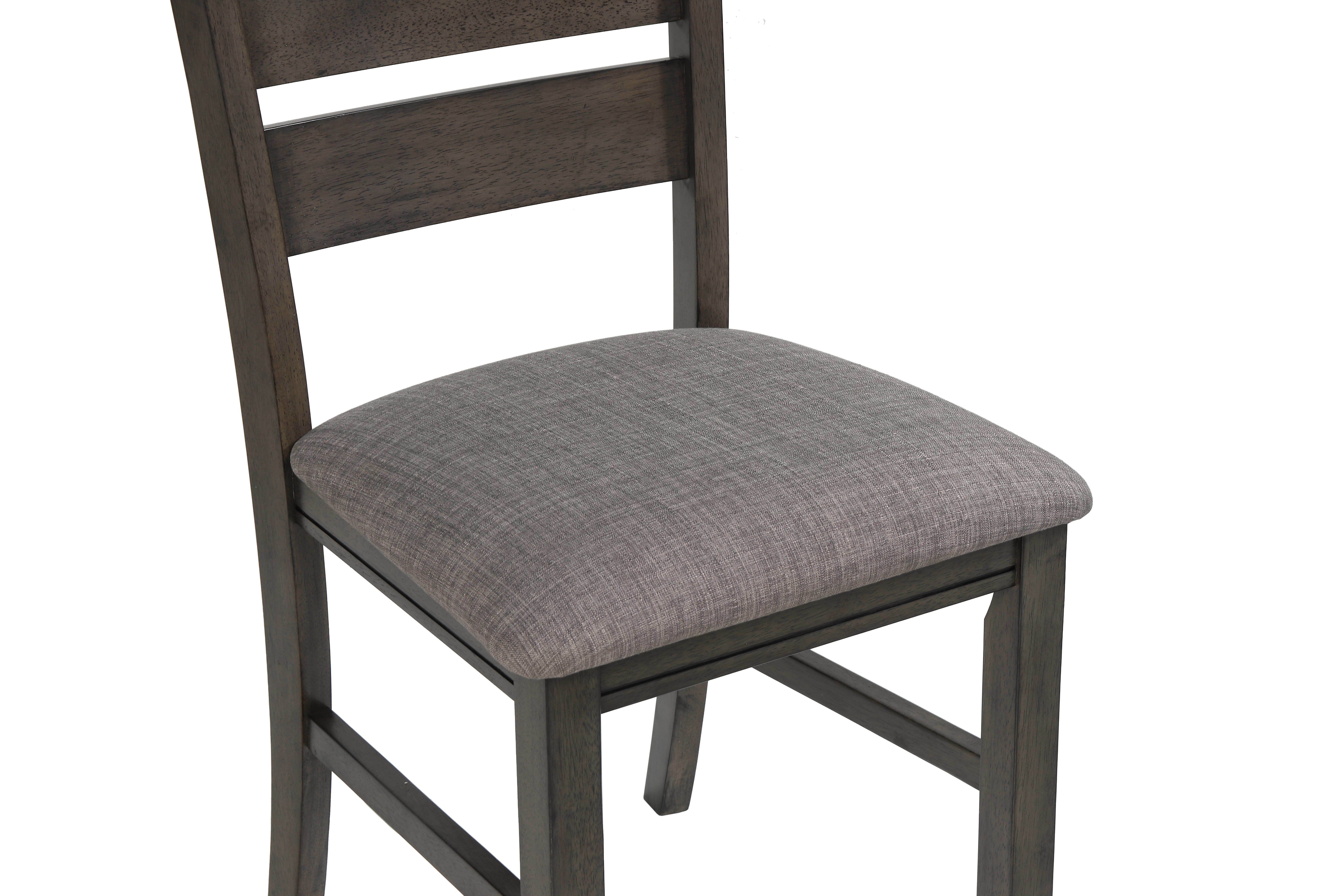 Description :- This dining side chair with gray fabric upholstered seat adds contemporary style and comfort. Use the chair at either of the two choices of rectangular dining table. The smooth, ladder back style backrest completes the sleek look of the chair..