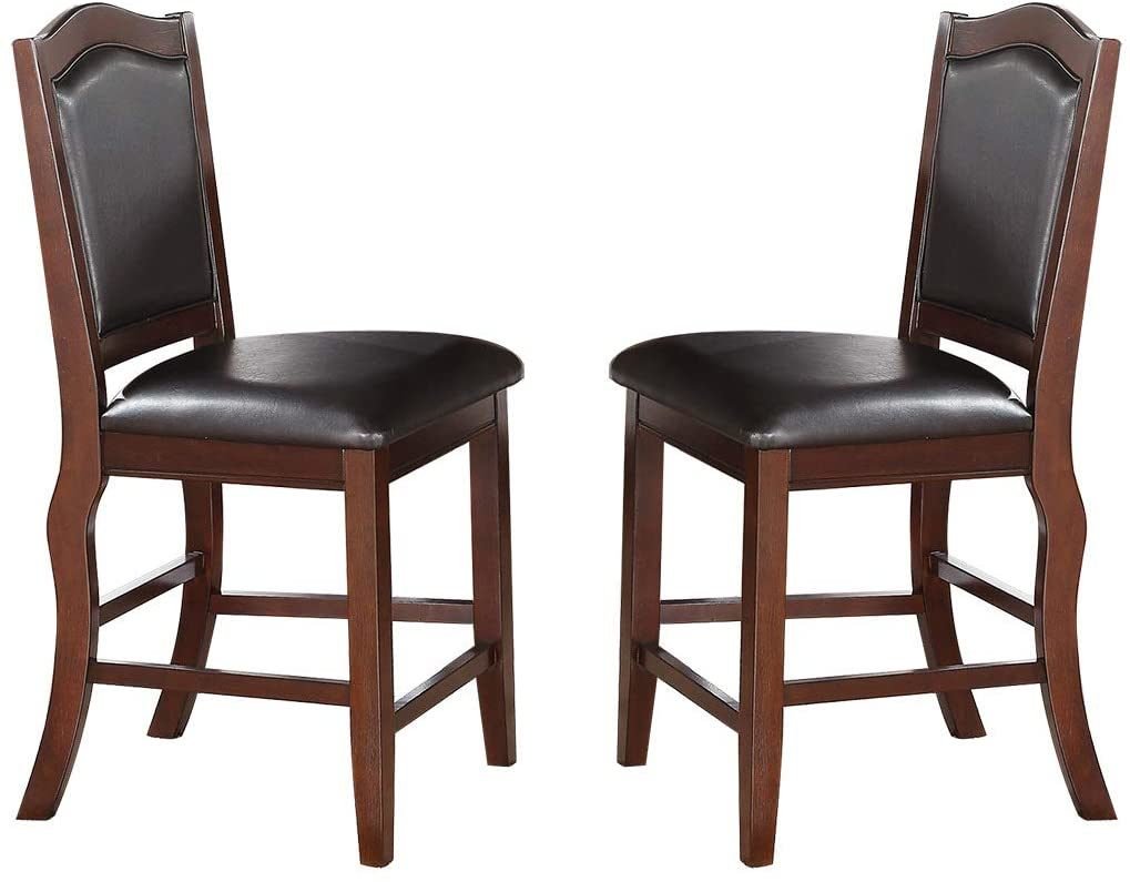 Dark Brown Wood Finish Set of 2 Counter Height Chairs Faux Leather Upholstery Seat Back Kitchen Dining Room Chair