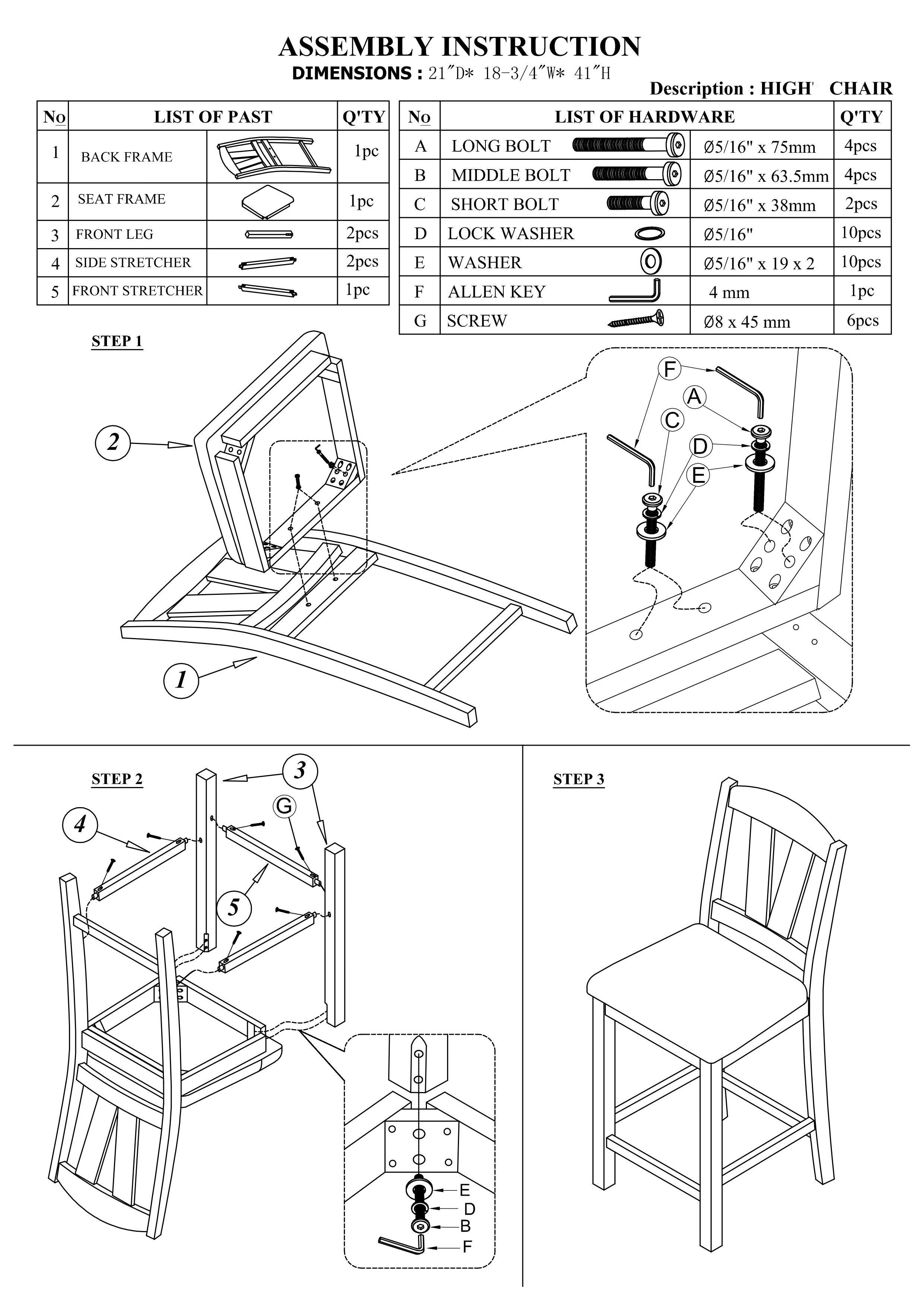 2x Counter Height Chair: 18"x 21" x 41"H, Seat Height 23"