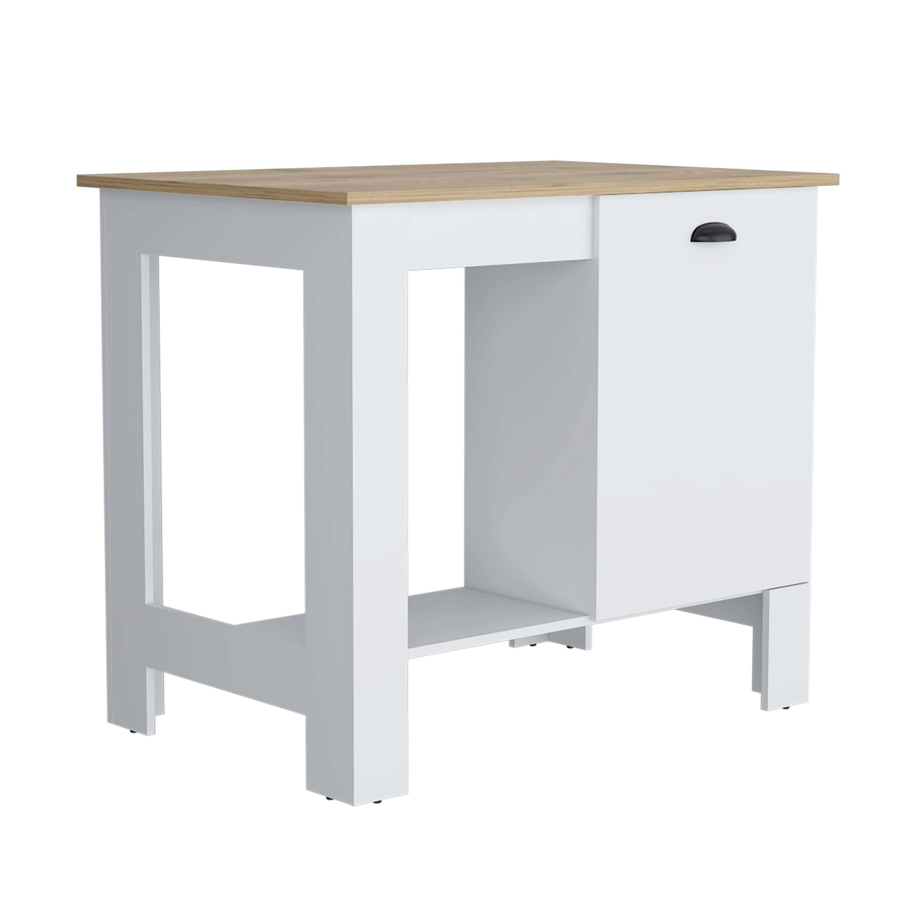 DEPOT E-SHOP Caddo Kitchen Island with Storage and Cabinet, White / Macadamia