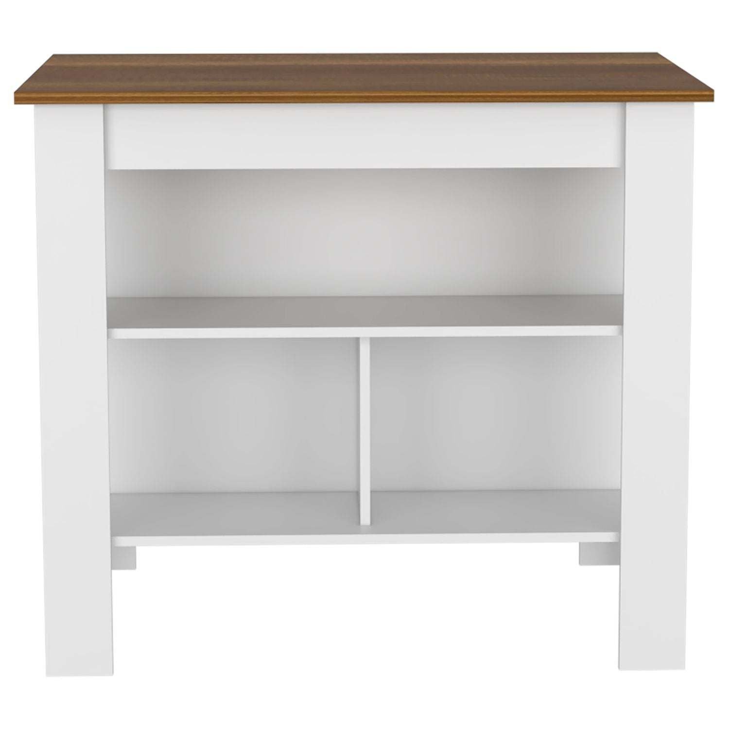 Home > DEPOT E-SHOP Delos Kitchen Island, Four Legs, Three Shelves, White / Walnut