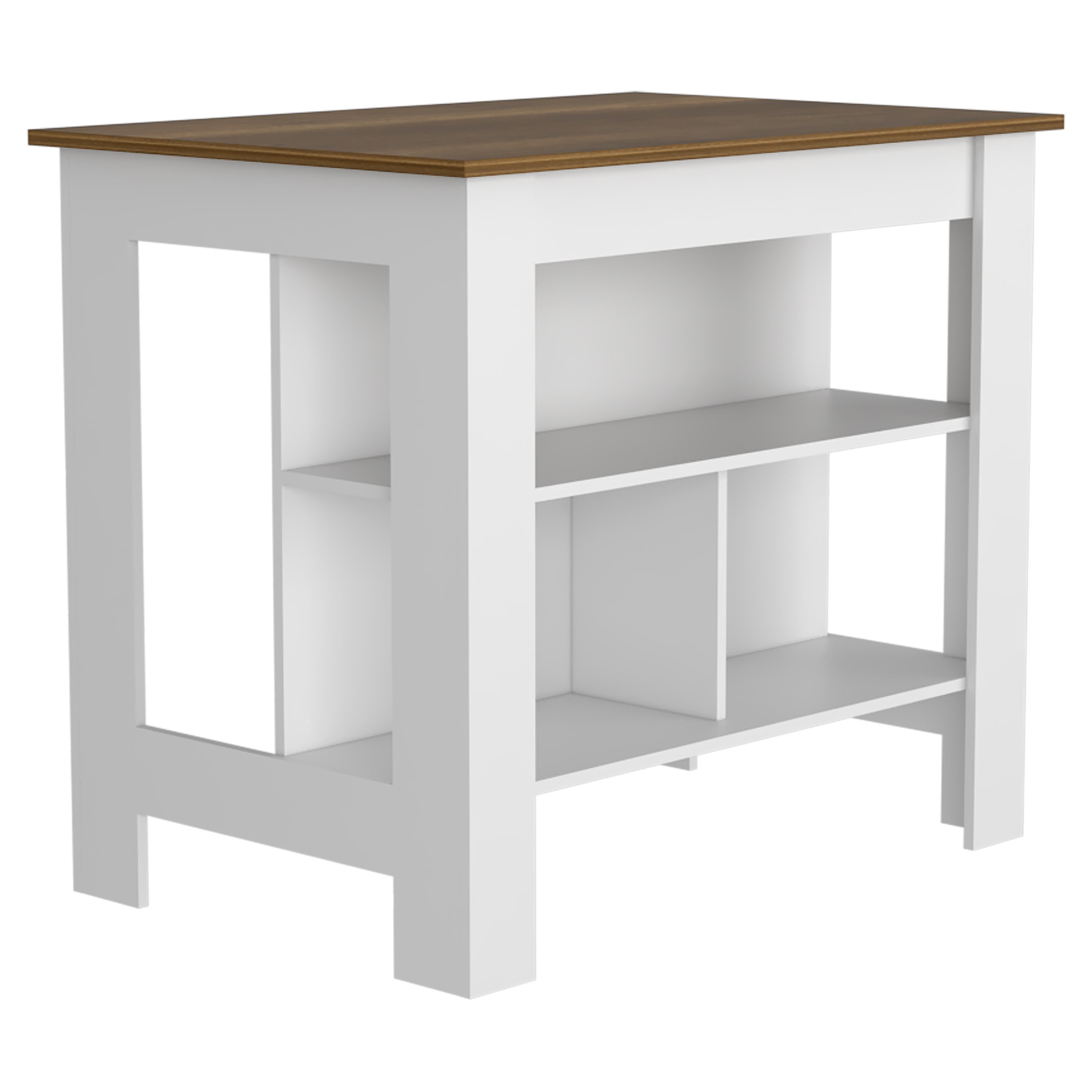 DEPOT E-SHOP Delos Kitchen Island, Four Legs, Three Shelves, White / Walnut