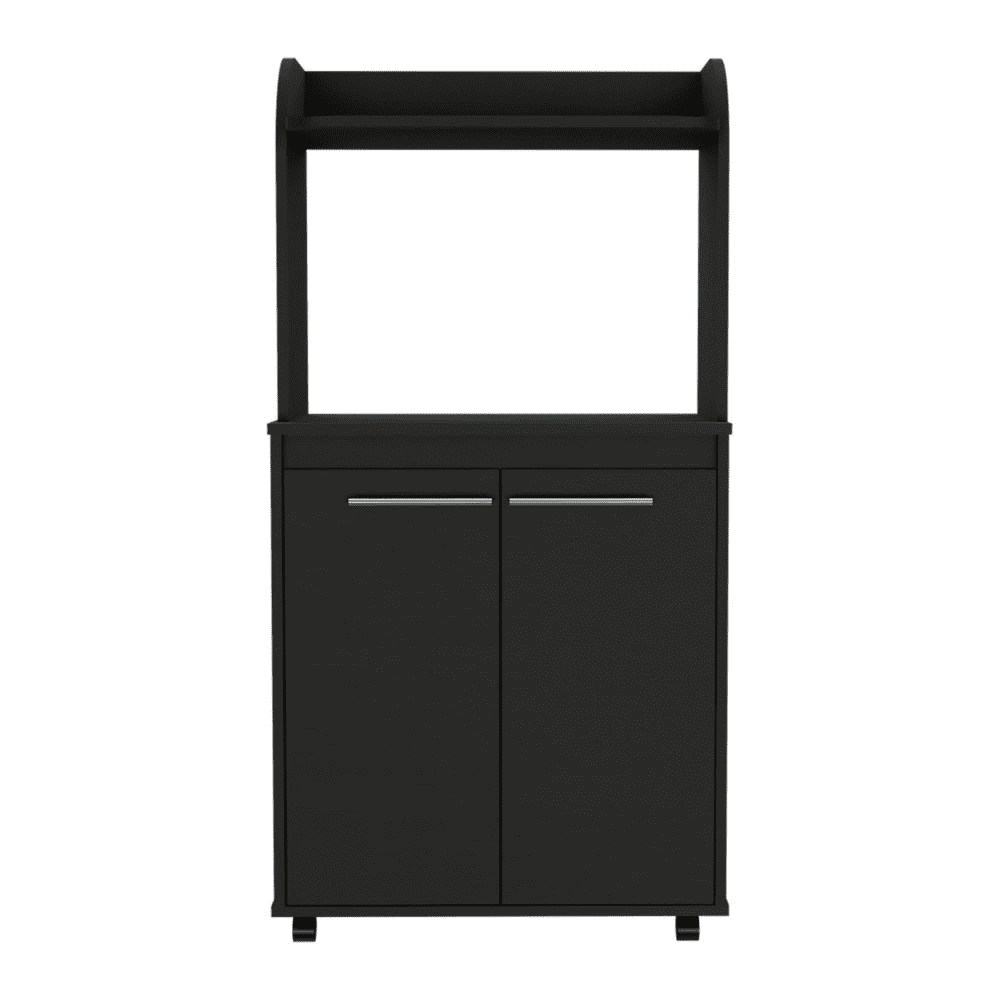 DEPOT E-SHOP Lucca Kitchen Cart, Double Door Cabinet, One Open Shelf, Two Interior Shelves, Black
