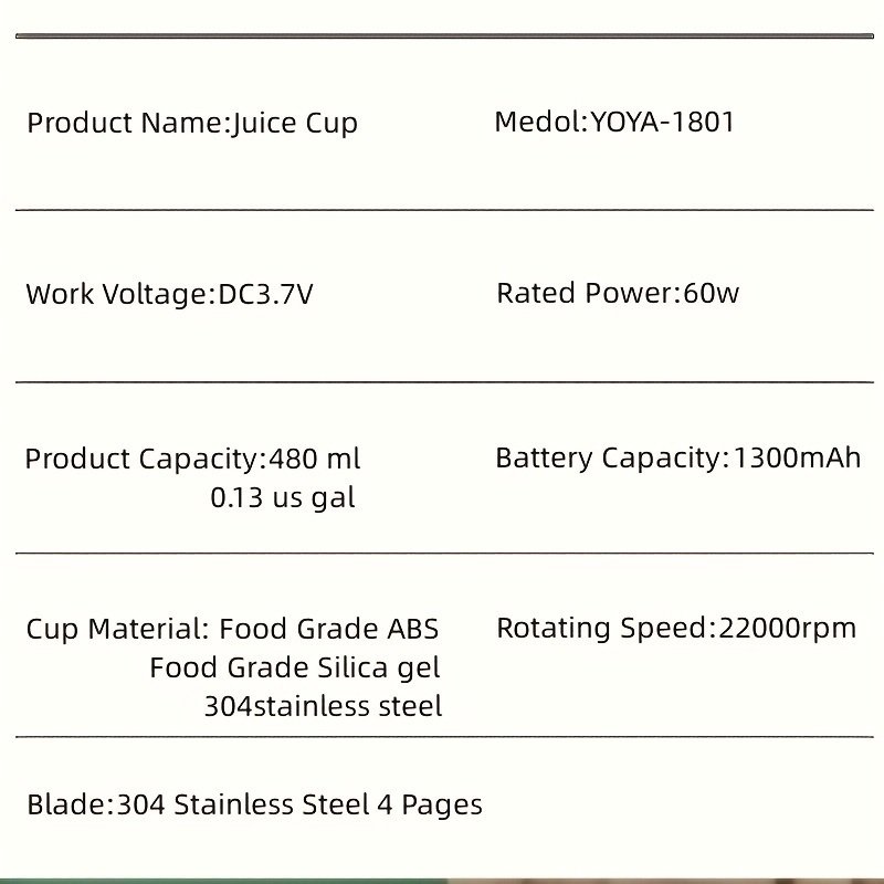 Home > Fruit Juicer Blender Juice Cup Mini Electric USB Portable Rechargeable Travel High Quality 480ml 4 Blades