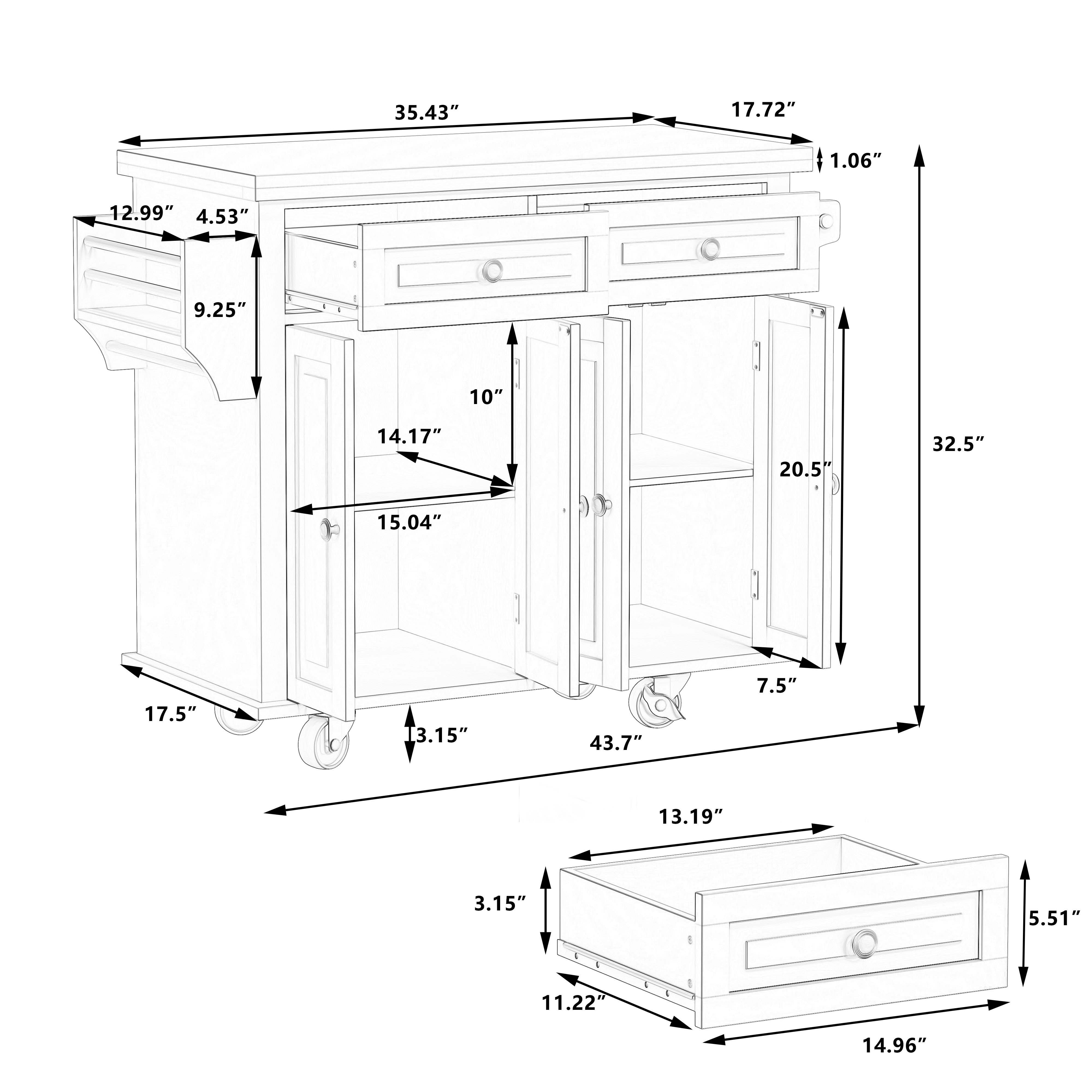 Home > Kitchen Island Cart with Two Storage Cabinets and Two Locking Wheels,43.31 Inch Width,4 Door Cabinet and Two Drawers,Spice Rack, Towel Rack