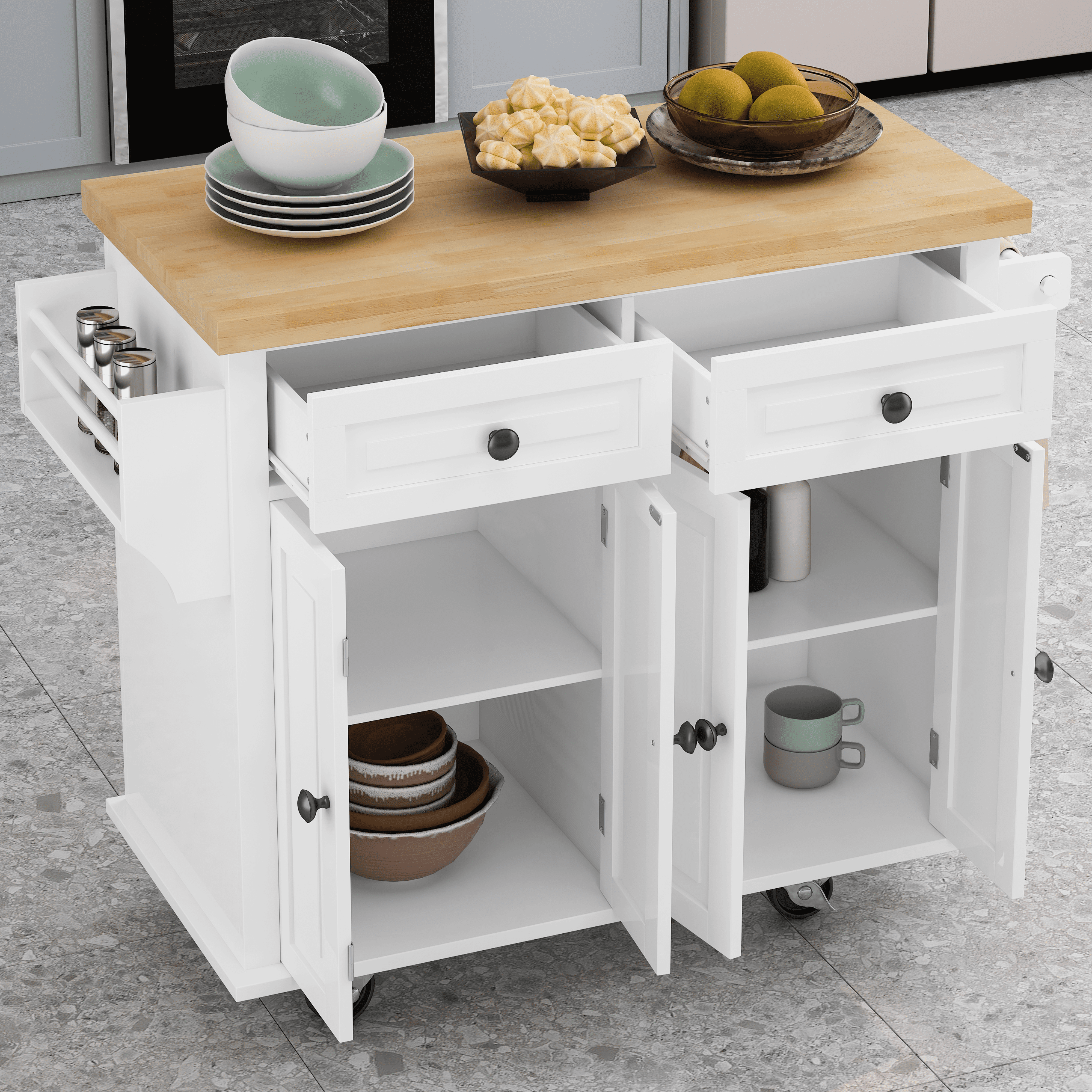 Kitchen Island Cart with Two Storage Cabinets and Two Locking Wheels,43.31 Inch Width,4 Door Cabinet and Two Drawers,Spice Rack, Towel Rack