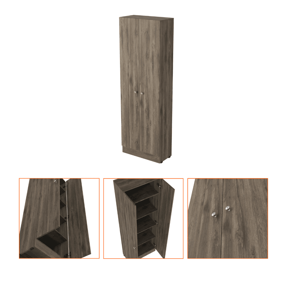 Here's the Ontario Kitchen Set – a complete package with a beautiful kitchen island and pantry. The perfect addition to any home, this set is designed with exclusive manufactured wood in a white-light-gray finish. Whether cooking for one or hosting a big gathering, the Ontario Kitchen Set has everything you need to make mealtime a breeze. The internal storage capacity is perfect for keeping all kitchen essentials within reach. Give your kitchen the makeover it deserves with the Ontario Kitchen Set.This stylish island is perfect for any kitchen, with a large top surface (40,5 "W X 27,5 "D) perfect for meal prep or entertaining. The white-light gray finish is easy to care for and will make your kitchen look its best. The modern style impresses your guests, and the three spacious lower shelves provide plenty of storage space.The Virginia Storage Cabinet is an ingeniously designed pantry that provides ample storage space for all your kitchen needs. The double-door cabinet reveals five interior shelves, perfect for holding everything from spices and dry goods to pots and pans. The elegant design of the Virginia Storage Cabinet complements any kitchen décor, and the extra storage it provides is a lifesaver in any busy household. Don't miss out on this must-have kitchen essential.Dimensions:Furniture 1, Brooklyn Kitchen IslandWidth: 40,5'Height: 35,4'Depth: 27,5'Furniture 2, Virginia Storage CabinetWidth: 23,6'Height: 71,1'Depth: 11,8'