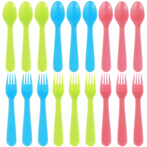 [colorful] The toddler cutlery has bright colors and fun designs that kids will love and make their mealtimes all the more enjoyable. And the 18pcs pf toddler cutlery set includes 9 forks (3 blue + 3 pink + 3 green) and 9 spoons (3 blue + 3 pink + 3 green).
