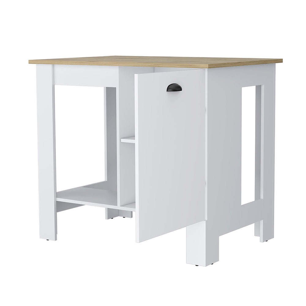 Vancouver 1-Door Kitchen Island with Open Shelf White and Macadamia